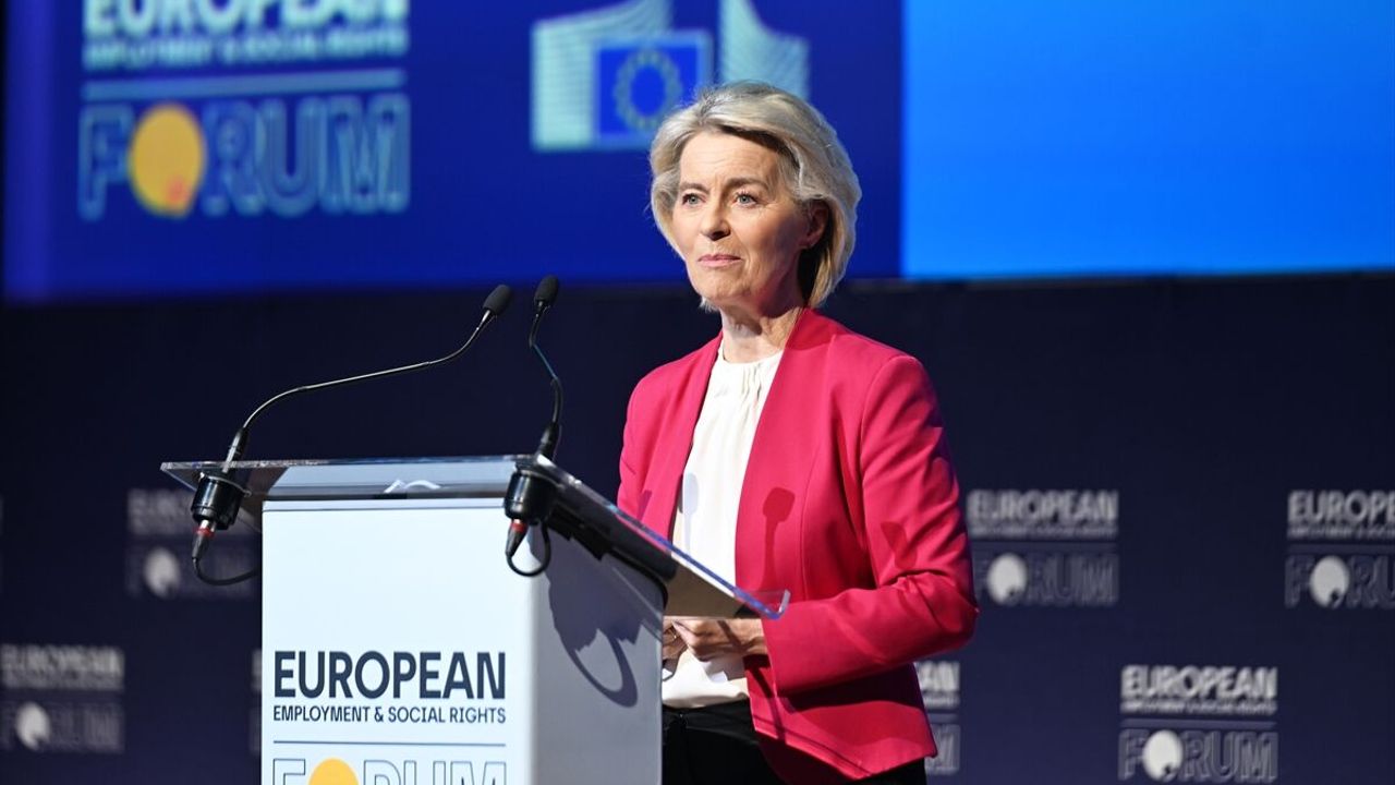 Von der Leyen, Brüksel'de düzenlenen Avrupa İstihdam ve Sosyal Haklar Forumu'nda konuştu.