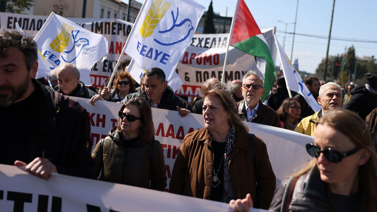 Yunanistan Komünist Partisi (KKE) ve KKE'ye bağlı işçi sendikası PAME'nin çağrısıyla eylemciler, Atina'daki Eleftherias Parkı'nda toplandı.