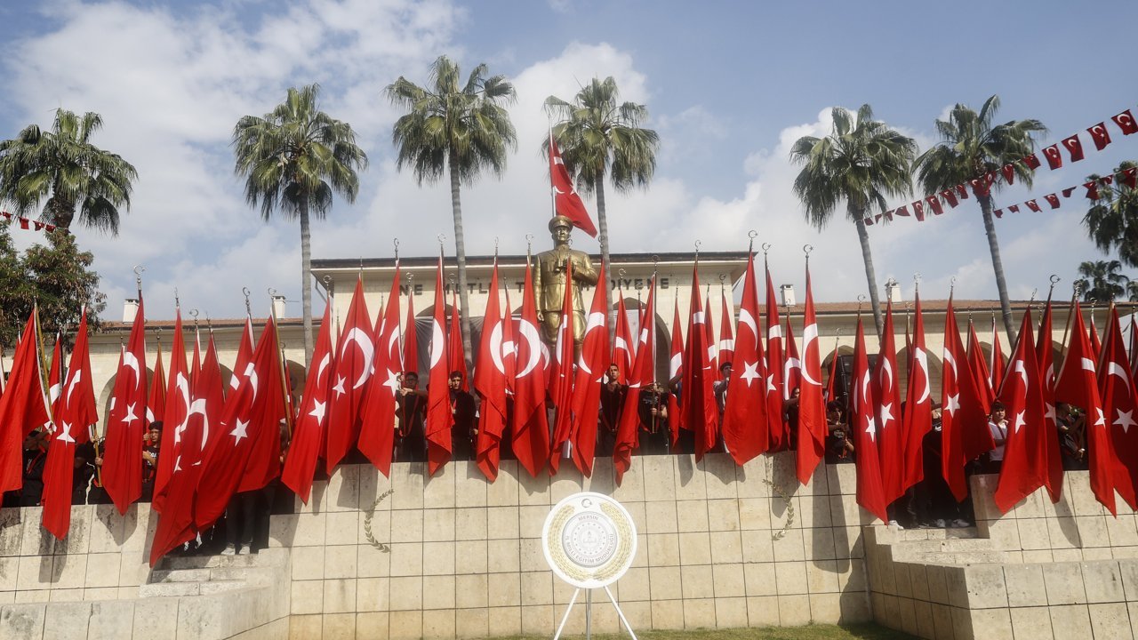 Hatay'da 23 Nisan Ulusal Egemenlik ve Çocuk Bayramı kutlamaları kapsamında İl Milli Eğitim Müdürü Harun Tüysüz ve beraberindeki çocuklar tarafından Cumhuriyet Meydanı'ndaki Atatürk Anıtı'na çelenk sunuldu, saygı duruşunun ardından İstiklal Marşı okundu.