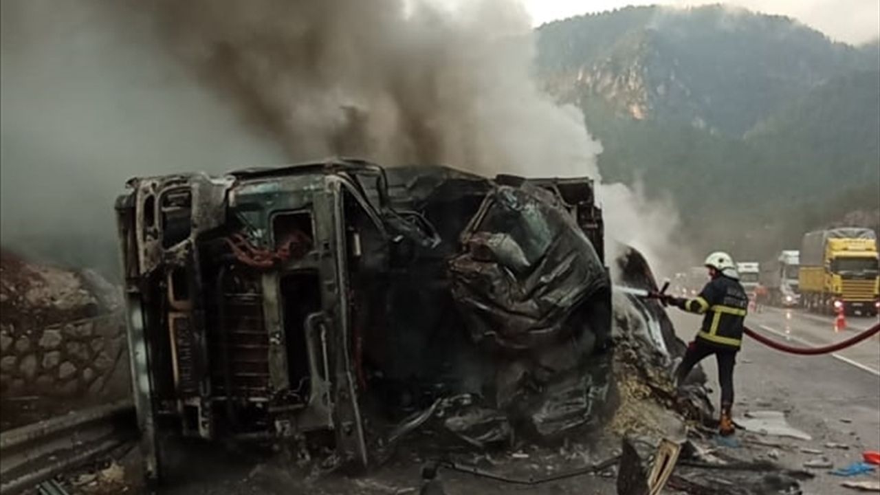 Pozantı-Tarsus Otoyolu Akçatekir mevkisinde çarpışan iki tırdan biri devrildi.