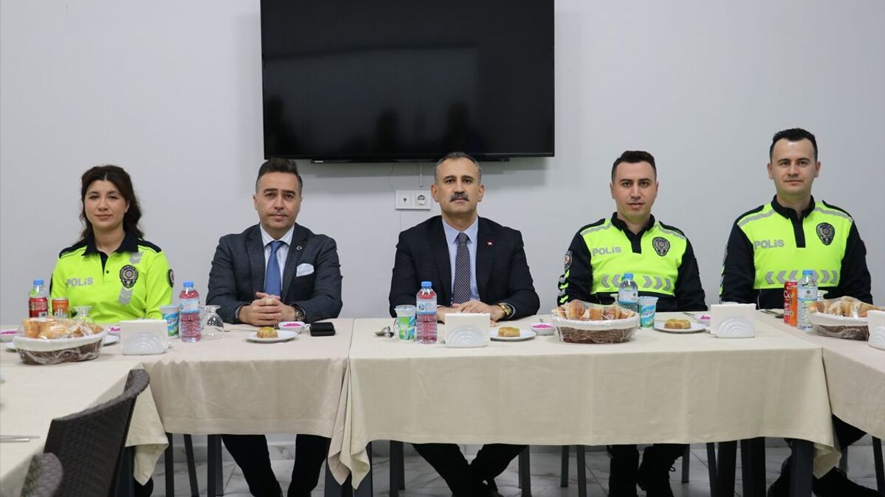 AĞRI (AA) - Ağrı Valisi Önder Bozkurt, zorlu kış koşullarında denetimlerini sürdüren trafik polisleriyle iftarda bir araya geldi.