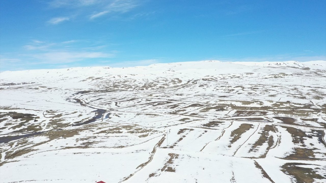 Beyaz örtüyle kaplanan dağlar ve karların erimeye başladığı köyler dronla görüntülendi.