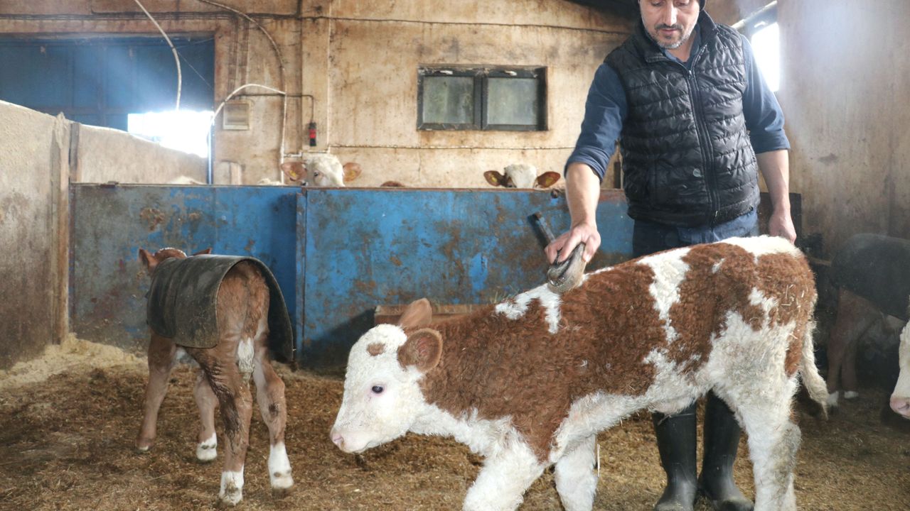 İlin et ve süt üretimine katkı sağlayan Aslan, buzağılarla beraber 140'ı bulan simental cinsi hayvanların bakımını her gün özenle yapıyor.