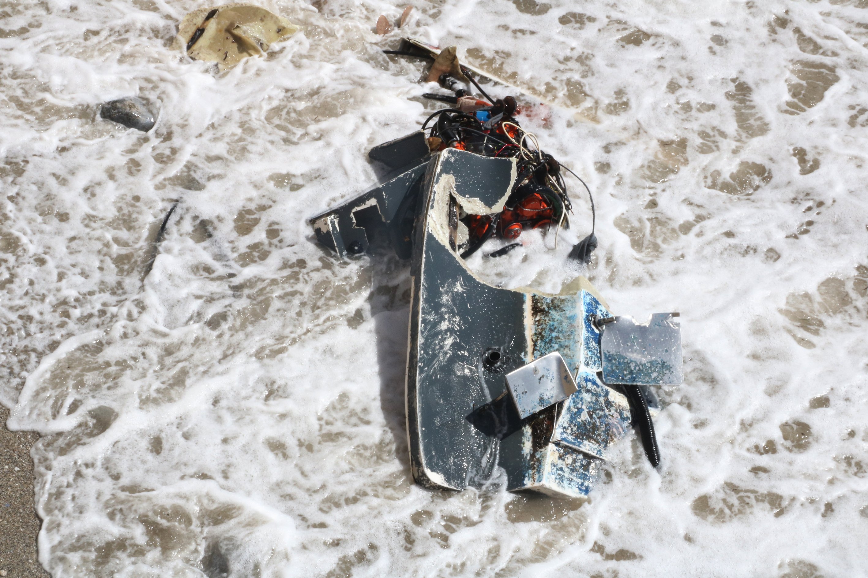 Şiddetli rüzgar ve dalgaların zarar verdiği balıkçı teknesi, bir süre sonra Soğukkapı Plajı'na vurdu.