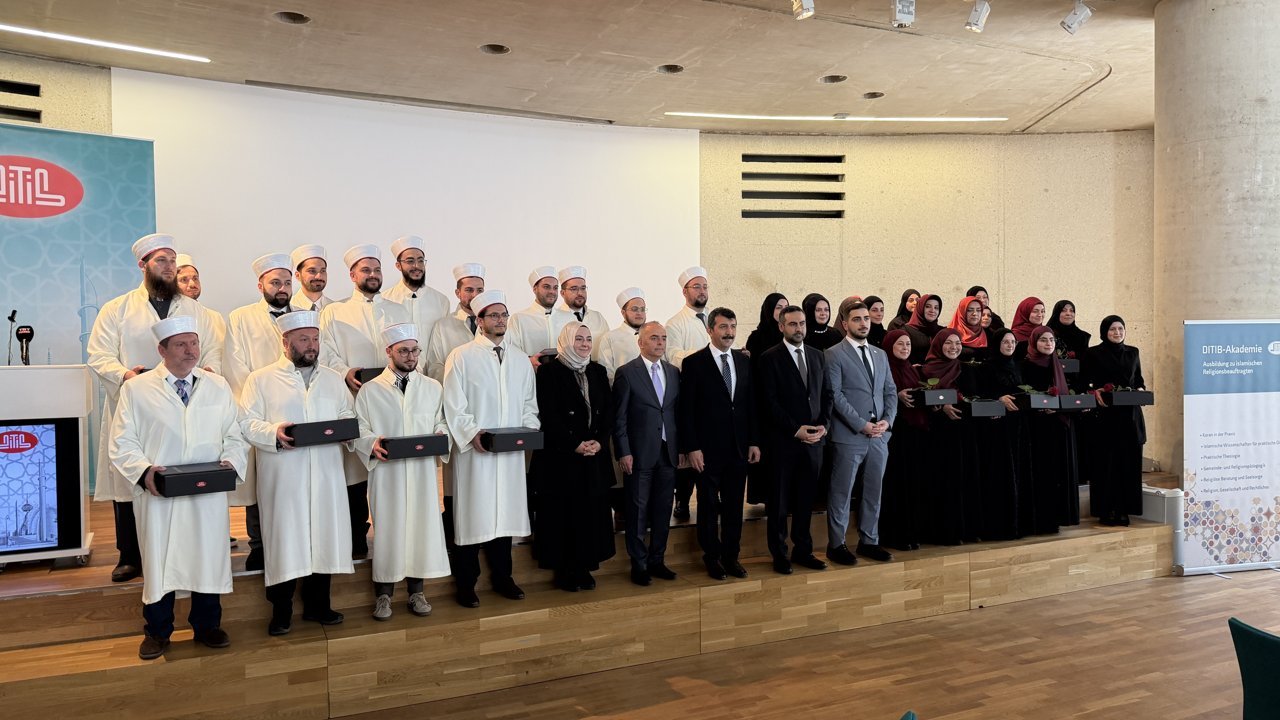 DİTİB Genel Merkezi'nde düzenlenen törene eğitimlerini tamamlayan 34 mezunun yanı sıra mezunların aileleri, Türkiye'nin Köln Başkonsolosu Hüseyin Kantem Al, DİTİB Genel Başkanı Ramazan Ilıkkan ile DİTİB yetkilileri katıldı.