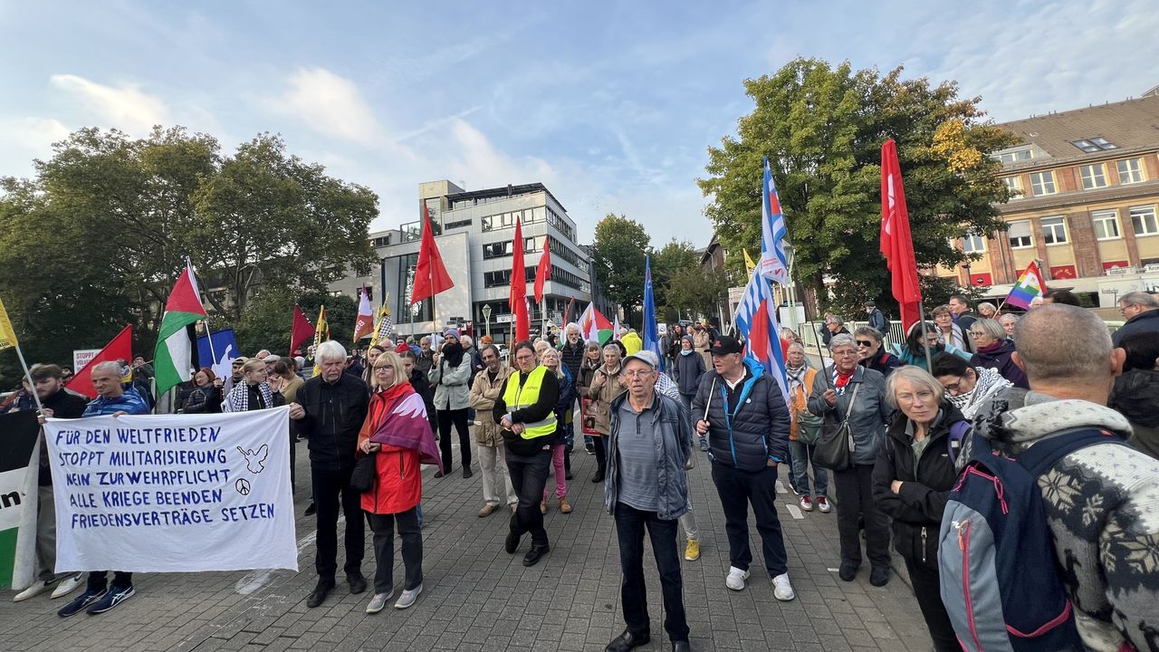 Salı günü konferansın yapıldığı bölgeye yürüyen kitle “Silahsız Barış”, "Yaşasın Uluslararası Dayanışma", "Konferansa Hayır", "NATO'dan çıkın" sloganları atıldı. Almanya'nın İsrail'e verdiği destek protesto edildi.