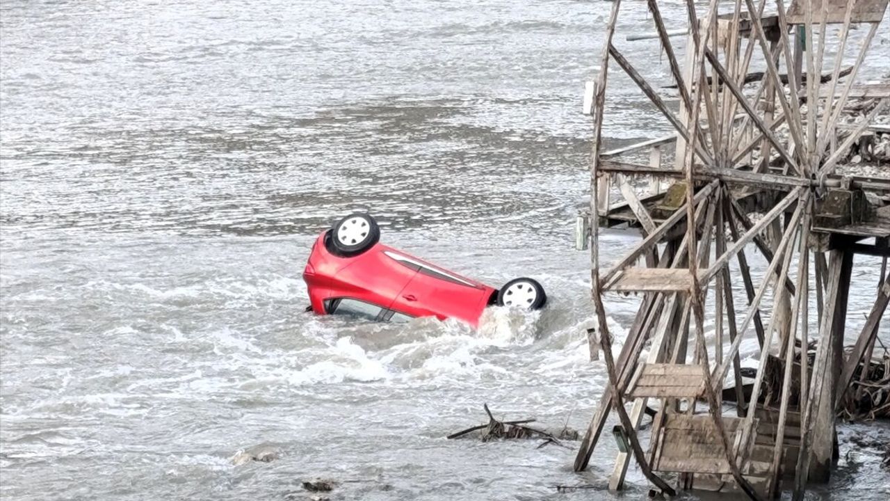 Otomobil ise vinç yardımıyla nehirden çıkarıldı.