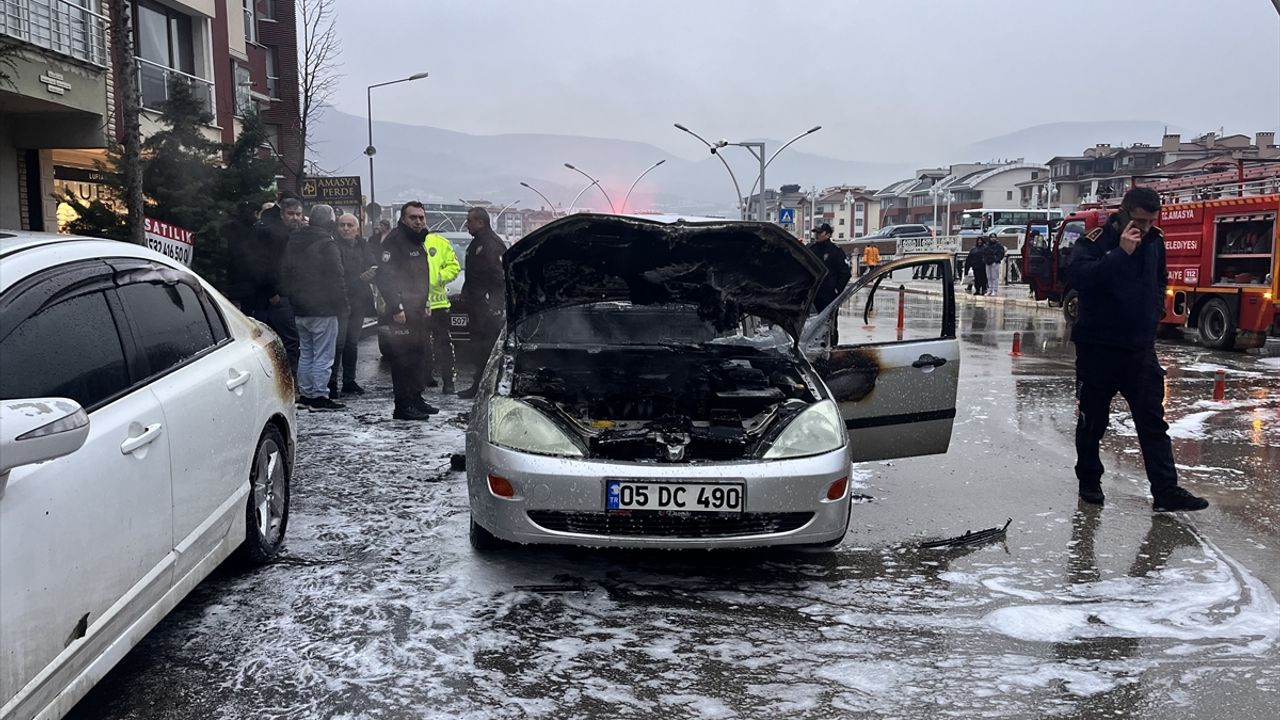 AMASYA (AA) - Amasya'da seyir halindeyken motor kısmında yangın çıkan otomobil kullanılamaz hale geldi.
