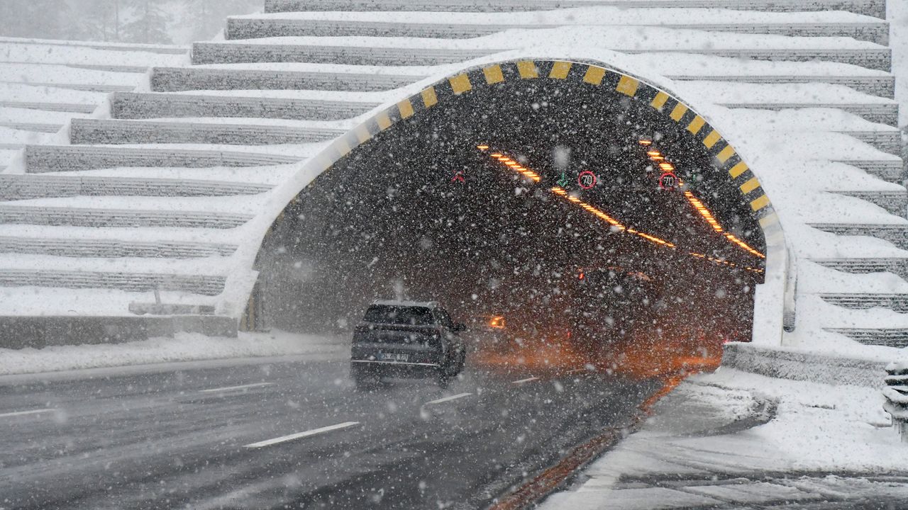 Ankara ile İstanbul arasında ulaşımı sağlayan Türkiye'nin önemli geçiş güzergahlarından otoyolun Bolu Dağı Tüneli kesiminde sabah saatlerinde başlayan kar etkisini artırdı.