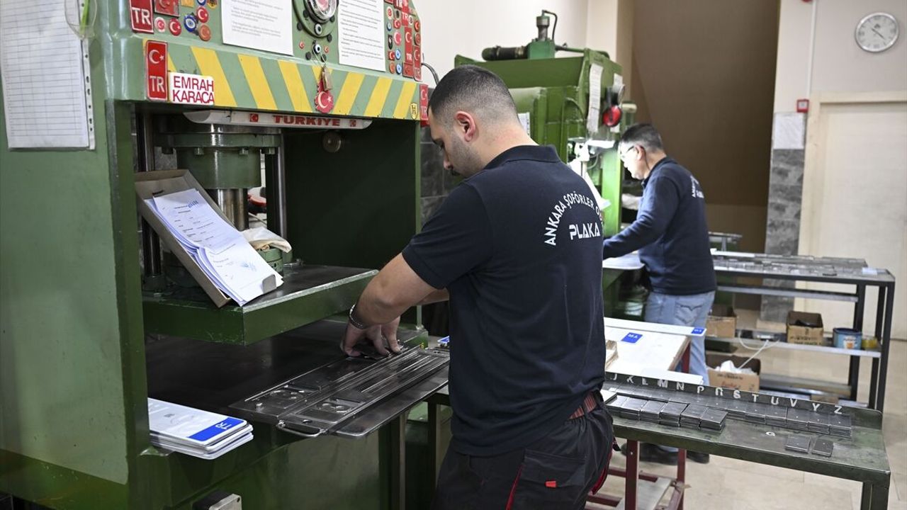 Altındağ'daki plaka basım merkezinde, değişim taleplerinin karşılanması için personel tam mesaiyle hizmet veriyor.