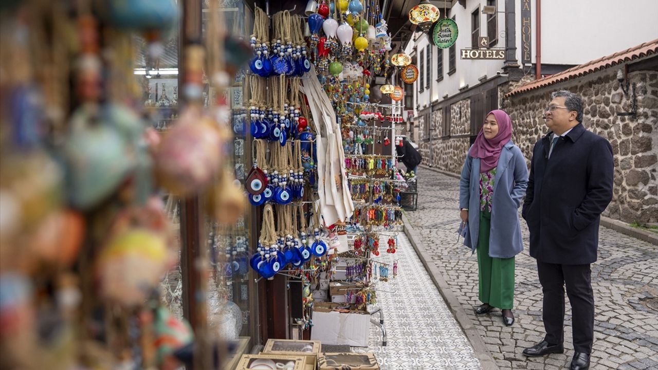 Türkiye'de görev süresi sona eren Büyükelçi Sazali, eşi ile Ankara Kalesi'nin civarındaki sokakları gezdi ve dükkanları ziyaret etti.