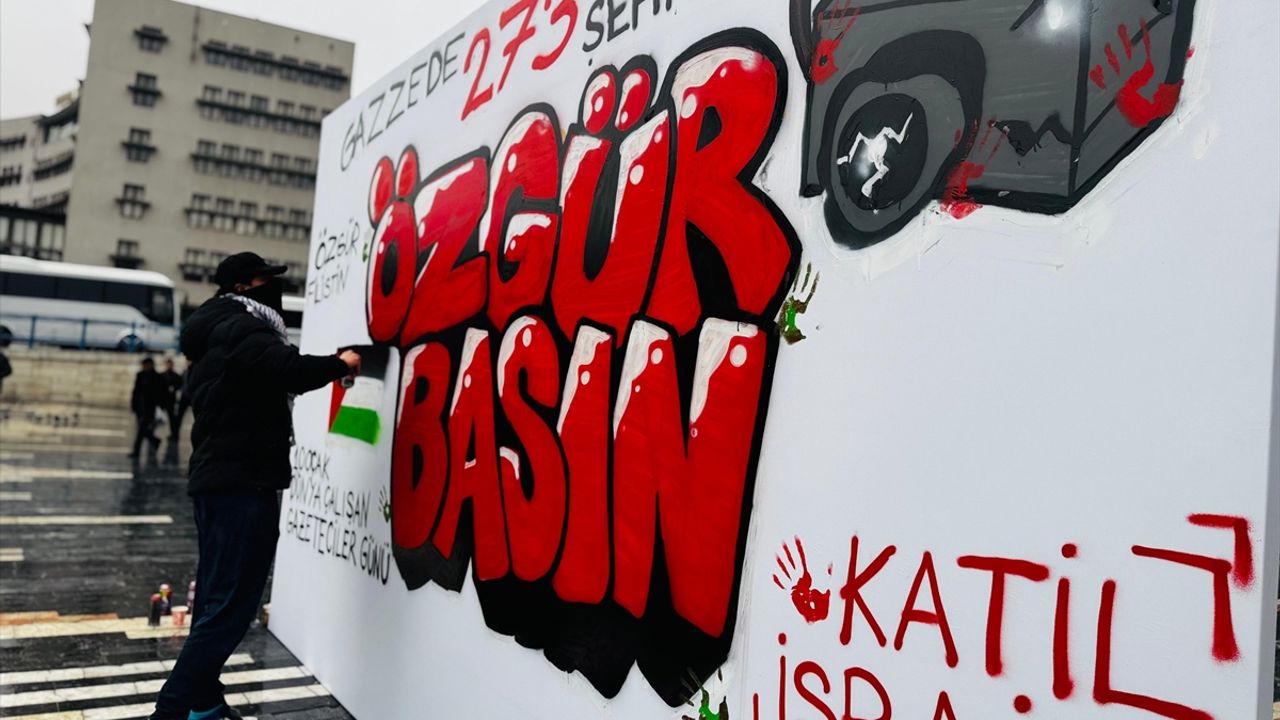 ANKARA (AA) - Ankara Filistin Dayanışma Platformunca (ANFİDAP), İsrail'in Gazze'ye yönelik saldırılarında hayatını kaybeden 273 Filistinli gazeteciyi anma amacıyla grafiti çalışması yapıldı.