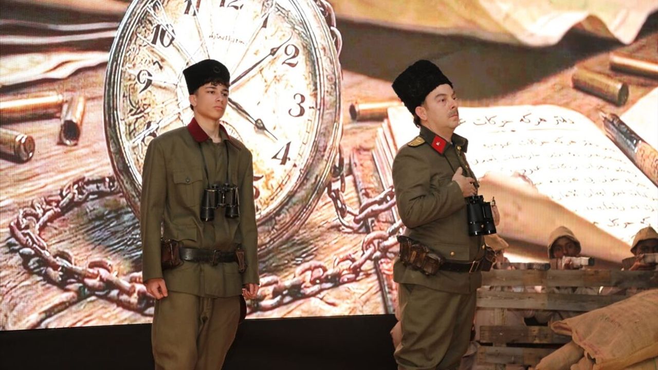 Programın ilk bölümünde öğrenciler, 'Hatıra 111' adını verdikleri tiyatral sunumda, müzik ve çeşitli nesneler eşliğinde Çanakkale Savaşı'nın tarihini anlattı.