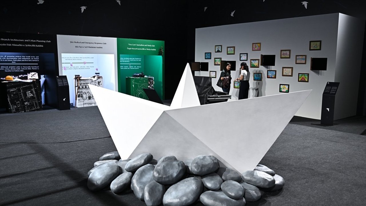 'Geleceğin kapısında kalanlar' başlıklı alanda da yarım kalan eğitimlerin ve kesintiye uğrayan hayatların sembolü olan diplomalar sergilendi.