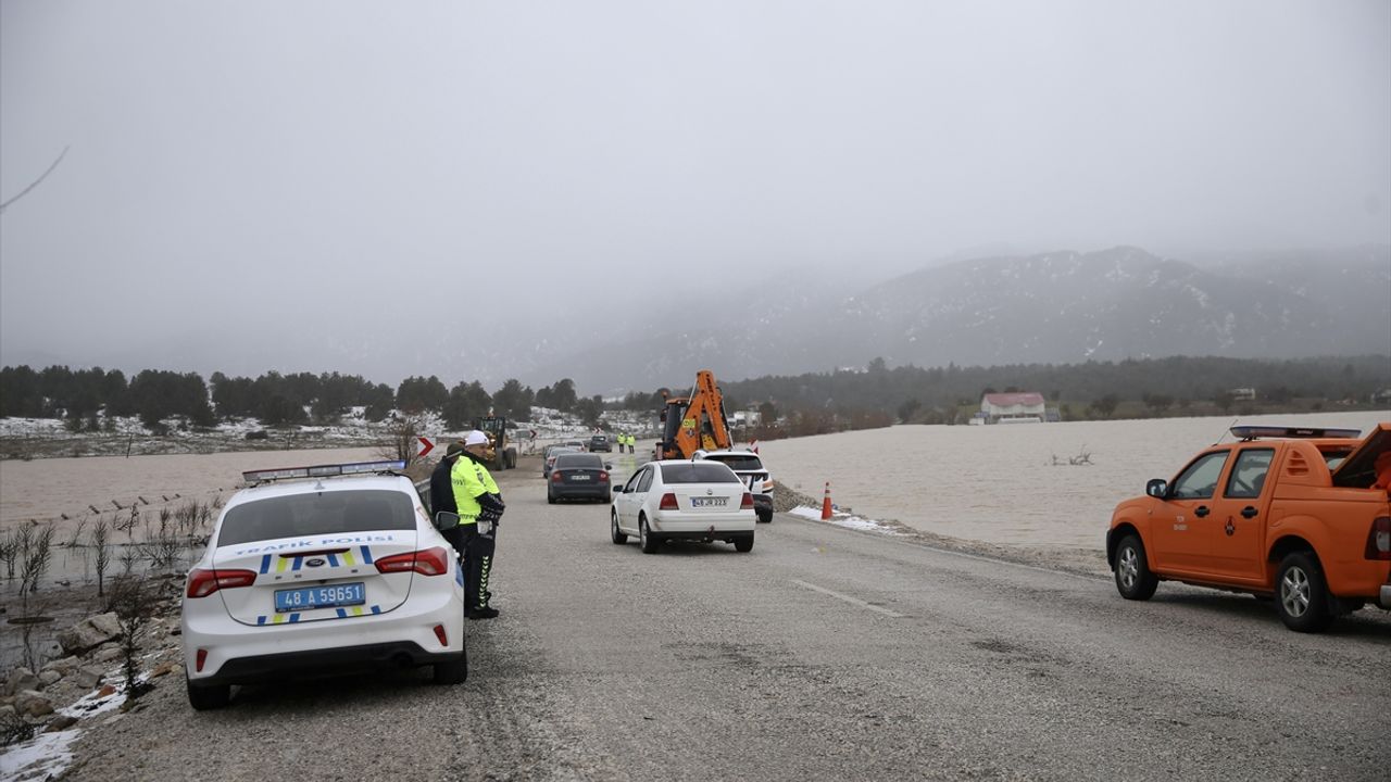 Kara yolunun bir noktasında suyun yola taşması üzerine bölgeye Fethiye Bölge Trafik İstasyon Amirliği ile Karayolları ekipleri sevk edildi.