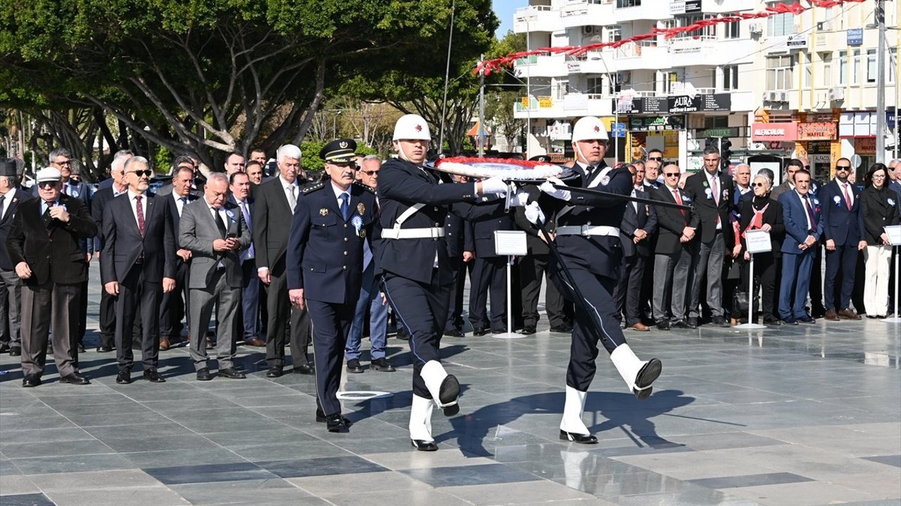 Antalya'da Cumhuriyet Meydanı'nda düzenlenen törende, İl Emniyet Müdürü Sabit Akın Zaimoğlu, Atatürk Anıtı'na çelenk sundu.