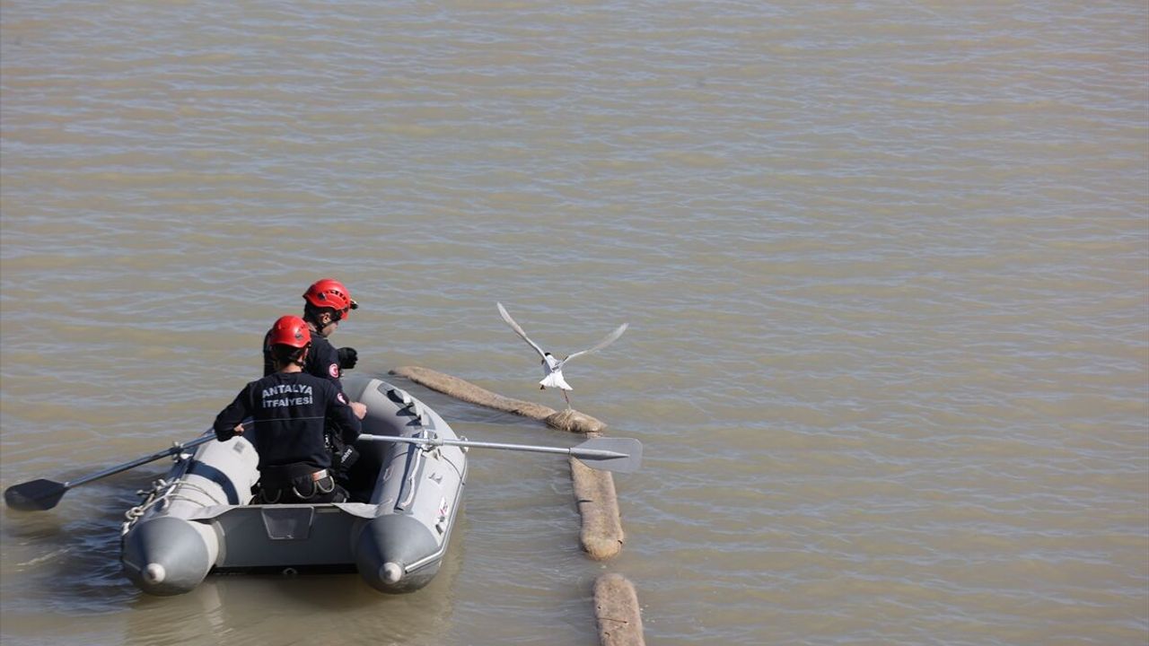 Konyaaltı ilçesindeki Boğaçayı deresi kenarında yürüyüş yapanlar, su yüzeyinde bir martının çırpındığını görünce durumu itfaiyeye bildirdi.