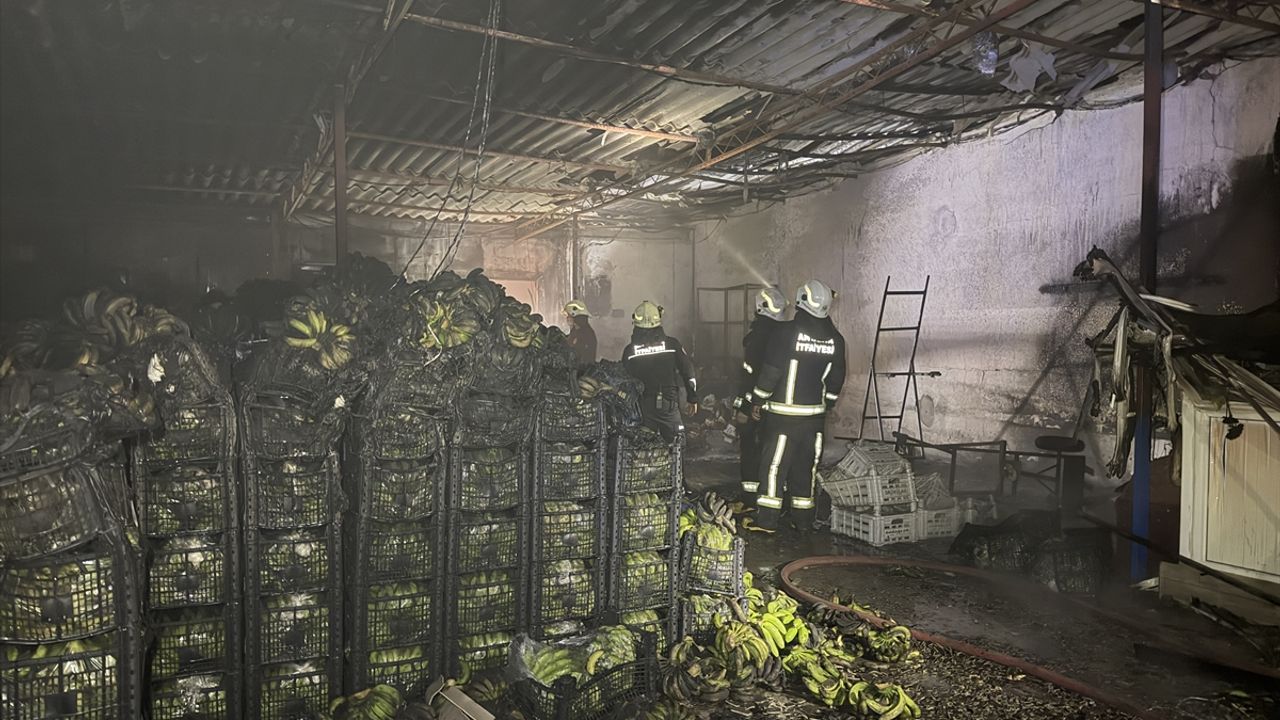Alanya ilçesinde Demirtaş Sebze ve Meyve Toptancı Hali'nde faaliyet gösteren muz sarartma tesisinde henüz belirlenemeyen nedenle yangın çıktı.