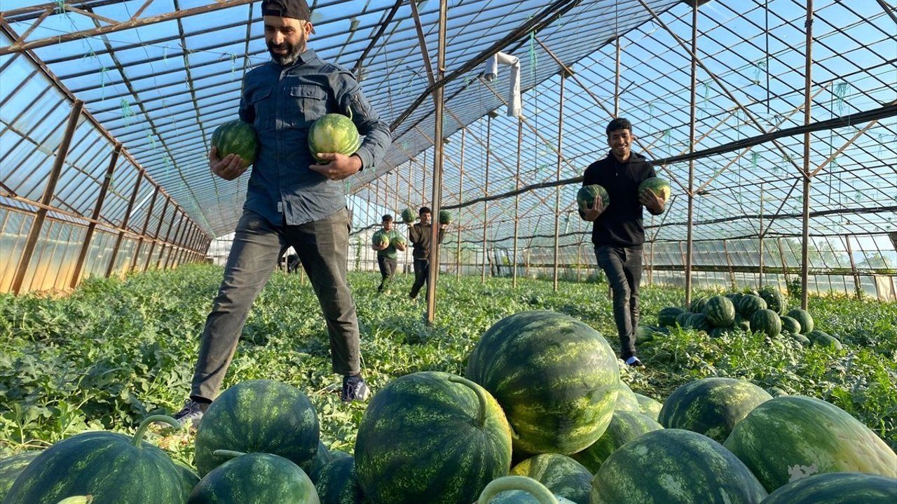 Ağırlıkları 5 ila 10 kilogram olan turfanda karpuzlar, özenle toplanarak başta iç piyasa olmak üzere satışa hazırlanıyor. İlk hasadın büyük bölümü yurt içinde tüketileceği, ilerleyen günlerde ise ihracatın başlayacağı belirtildi.
