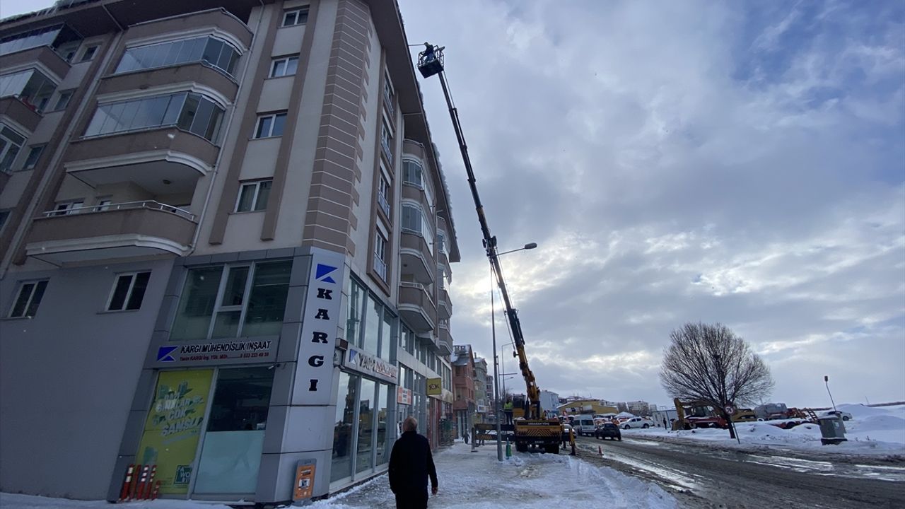 ARDAHAN (AA) - Ardahan'da yoğun kar yağışının ardından etkili olan dondurucu soğuklar nedeniyle çatılarda oluşan buz sarkıtları temizleniyor.
