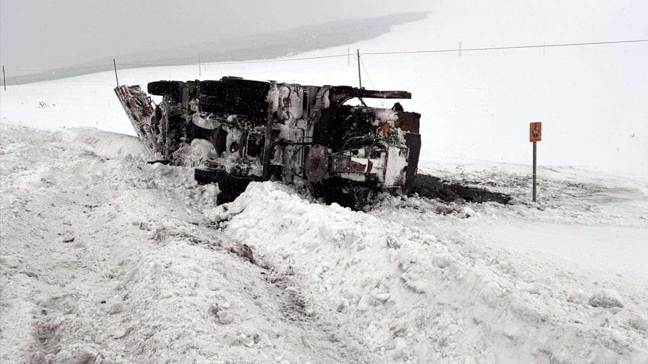 ARDAHAN (AA) - Ardahan'da, kar küreme ve tuzlama çalışması yapan araç devrildi.