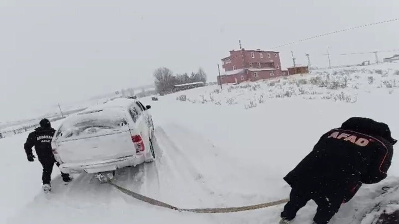 ARDAHAN (AA) - Ardahan'da kar ve tipi nedeniyle yolda mahsur kalan 11 araç, ekiplerce kurtarıldı.