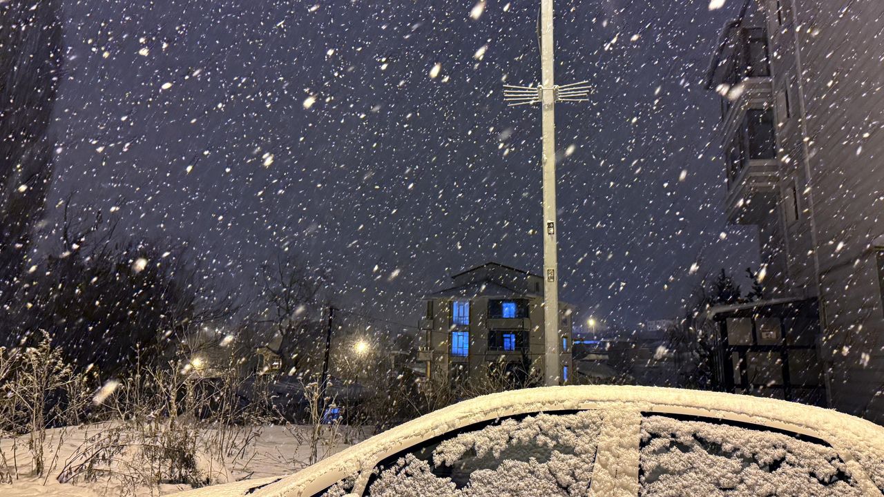 Akşam saatlerinde başlayan yağışla birlikte kent merkezi kısa sürede beyaza bürünürken, park halindeki araçların üzeri karla kaplandı.
