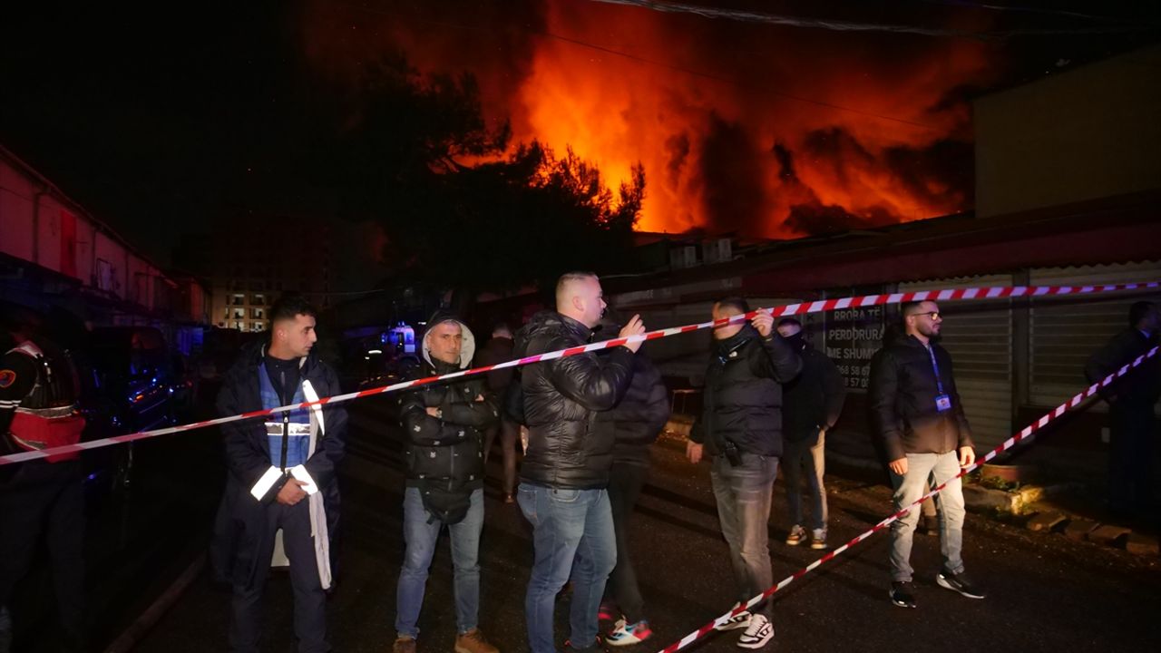 TİRAN (AA) - Arnavutluk'un başkenti Tiran'da çeşitli malzemelerin satıldığı bir pazara ait depolarda yangın çıktı.