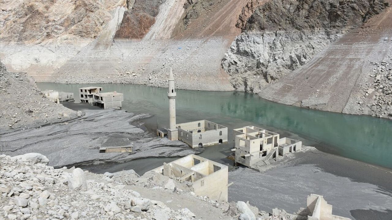 ARTVİN (AA) - Artvin'de 2012'de hizmete açılan Deriner Barajı ve Hidroelektrik Santrali (HES) suları altında kalan Narlık köyü, barajdaki su seviyesi azalınca gün yüzüne çıktı.