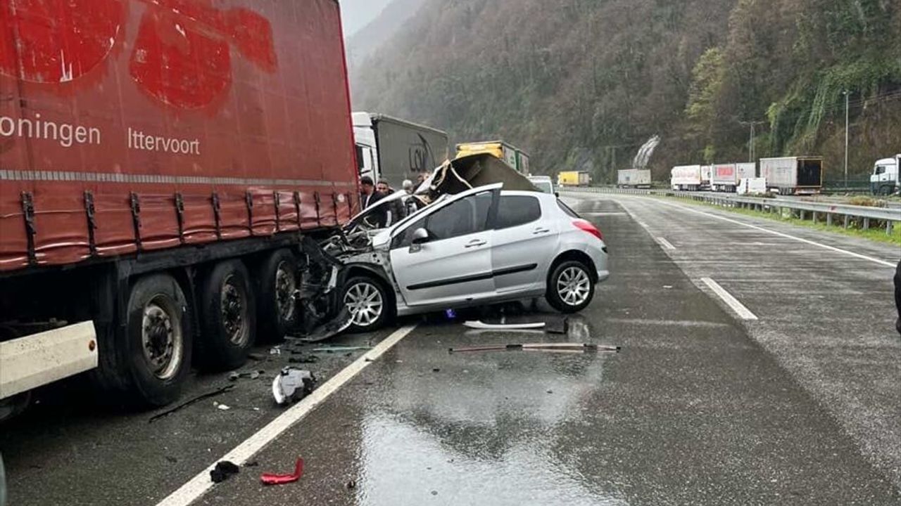 Karadeniz Sahil Yolu'nun Hopa-Kemalpaşa arasındaki Kopmuş mevkisinde, İ.A'nın kullandığı 19 AGD 077 plakalı otomobil, park halindeki yabancı plakalı tıra çarptı.