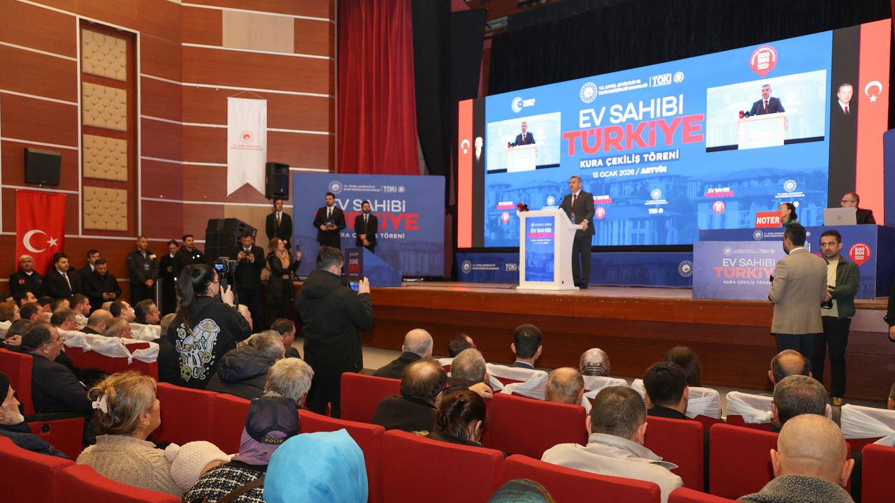 '2000 yılı öncesi yapılan konutların betonunda, arsasında, zemininde, planlamasında pek çok alanda sıkıntılı binalar var. Bunların tamamının yenilenmesi lazım. Bu kapsamda çalışmalarımız ülke çapında devam ediyor. Bakanlığa geldiğimden beri yağmurlardan, sellerden, orman yangınlarından, depremlerden başımızı kaldıramadık. Buna rağmen hamdolsun, Cenabıhakk'ın yardımı, Sayın Recep Tayyip Erdoğan'ın liderlik duruşuyla bütün bu sıkıntıların üstesinden geldik ve gelmeye devam ediyoruz. Bugün de 500 bin sosyal konutun, il bazında Artvin'imize düşen 1020 konutun talihlisini, sahibini bulmak için burada bulunmaktayız.'