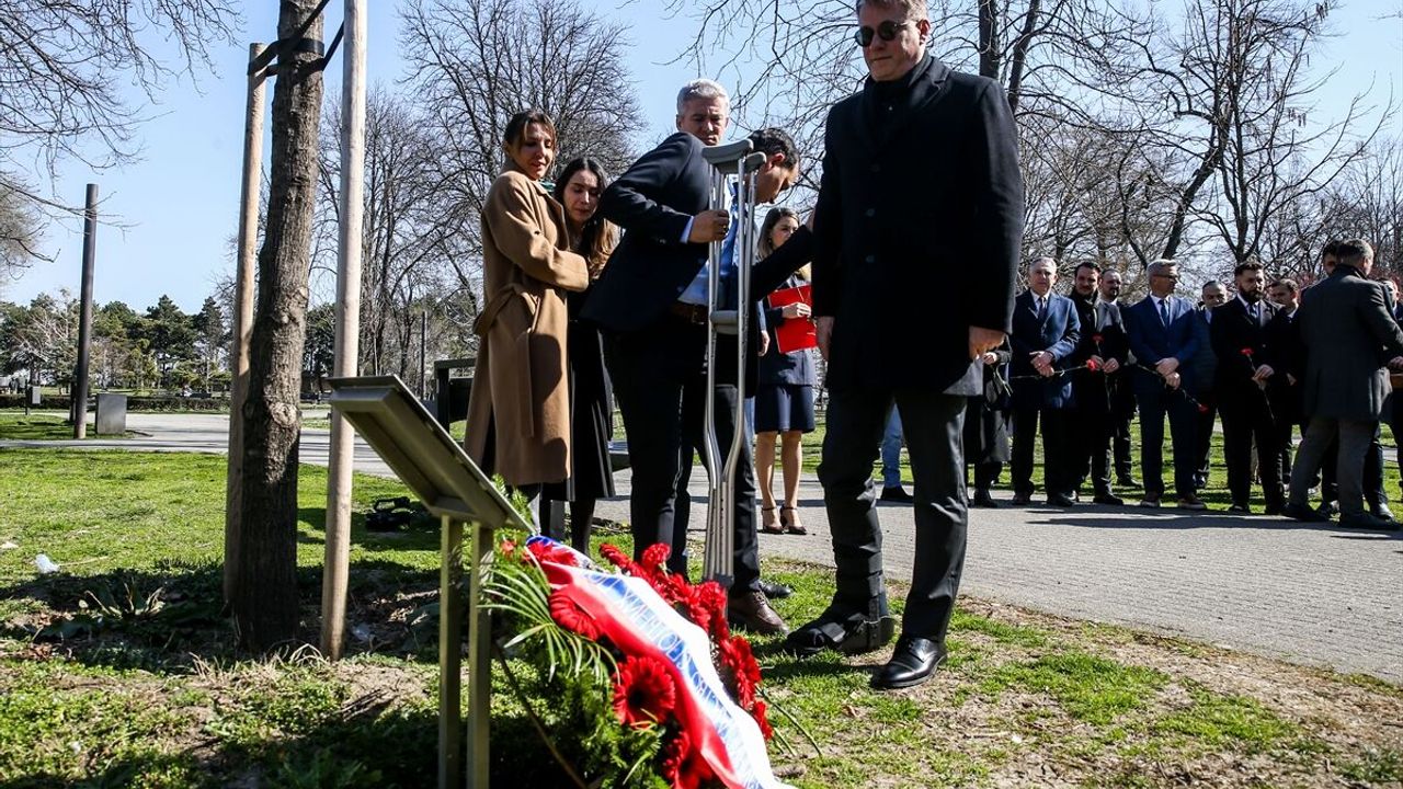 Belgrad'daki Taşmeydan Parkı'nda Balkar anısına dikilen ağaç ve anıtın önünde anma töreni düzenlendi.