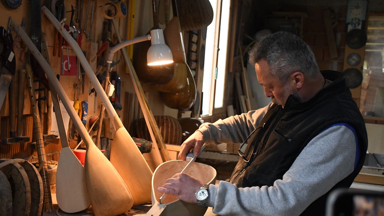 Kestane, akçaağaç ve yabani dut ağacından yaptığı el emeği bağlamaları meraklılarıyla buluşturan Horuz, mesleğini gençlere öğretmek istiyor.
