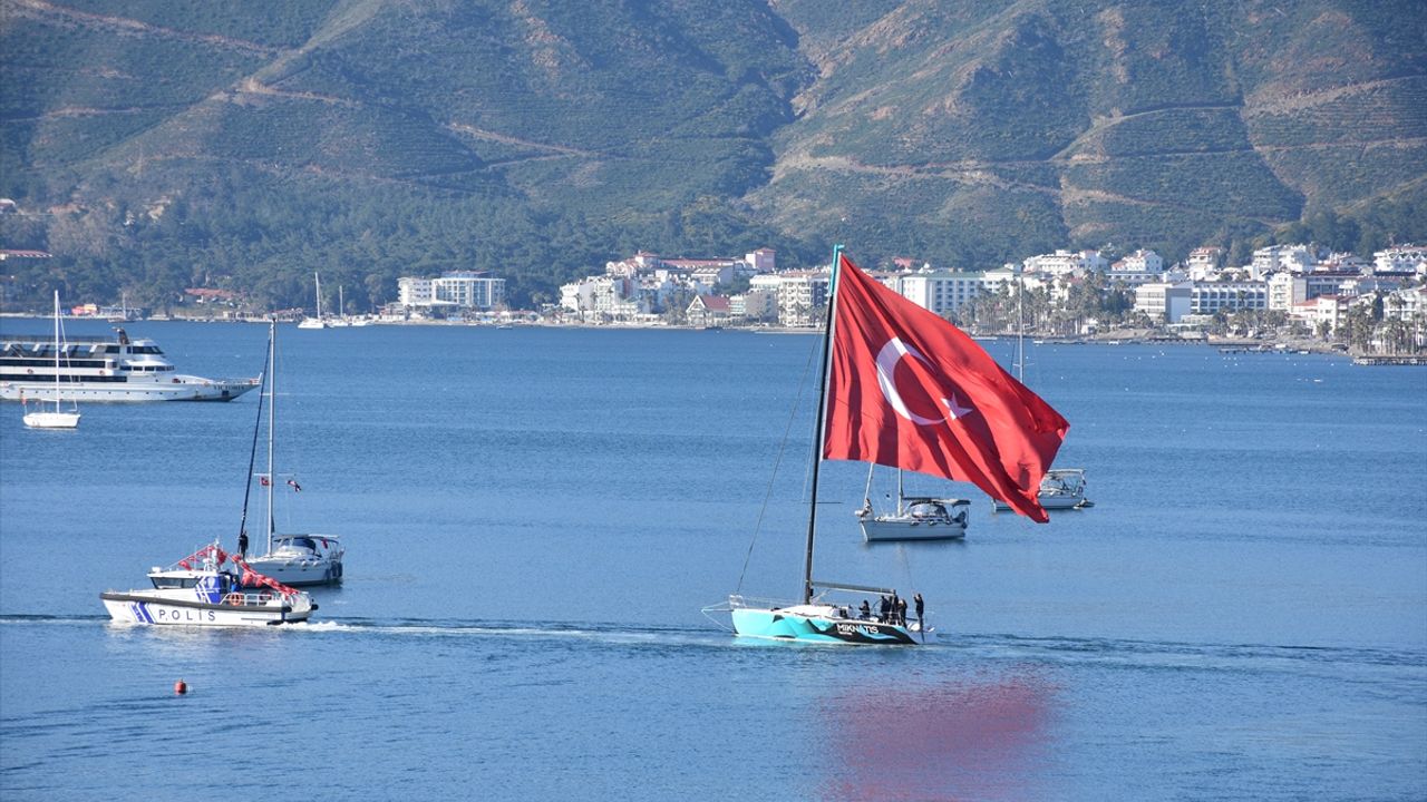 Konuşmanın ardından Türk bayrağı ve Atatürk posterleriyle donatılmış yelkenli yatlar ile Sahil Güvenlik ve Emniyet Müdürlüğü botları siren çalarak körfezde geçiş yaptı.
