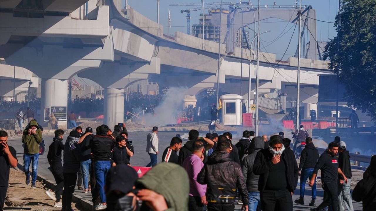 BAĞDAT (AA) - Irak'ın başkenti Bağdat'ta bir grup gösterici, İran lideri Ayetullah Ali Hamaney'in öldürülmesini protesto etmek amacıyla ABD Büyükelçiliğinin bulunduğu Yeşil Bölge'nin önünde toplandı.