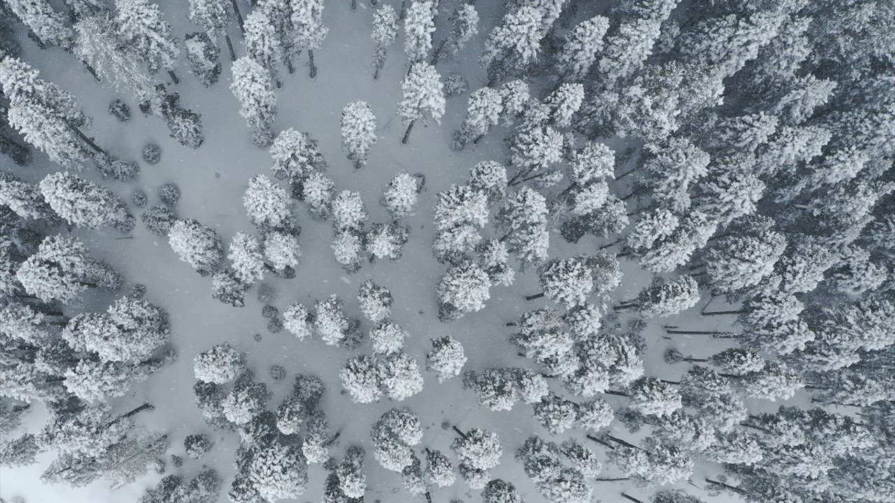 KASTAMONU (AA) - Bahar mevsiminde kış aylarında olduğu gibi karla kaplanan Ilgaz Dağı'ndaki ormanlar, dronla kaydedildi.