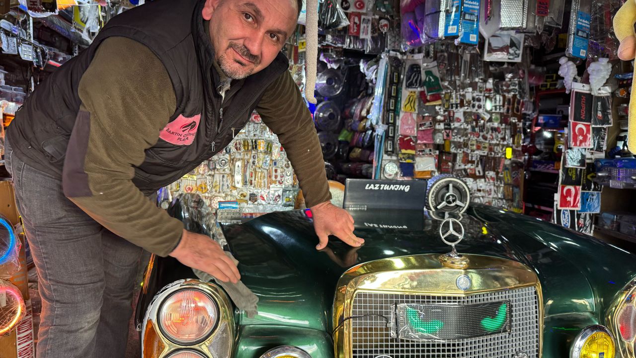 'Çalışma masası olarak kullandığım Mercedes'in her şeyi orijinal, üzerine yan sanayi hiçbir şey koymadım. Hatta eksik parçalarını yurt dışından getirttim. Keşke bu kadar çürümeseydi de yürüyen bir otomobil olsaydı. Bu bizim tarihi eserimiz sayılır, yolda yürüseydi daha mutlu olurdum. Zaten yerinde görünce çok üzülmüştüm. Şu anda yolda böyle araçlar göremiyoruz. Bazen teşvik alabilmek için bu araçları bir yemek parasına hurdaya ayırıyorlar. Bu aracın anısı biter mi? Bu araba kim bilir neler gördü, nerelere gitti? Şu arabaları yok ediyorlar ya üzülüyorum. Ben bu haliyle bile her gün kendi aracımı temizler gibi otomobil masasını cilalıyorum, siliyorum, parlatıyorum. Klasik araçlarla ilgilenmek, onları sevmek beni mutlu ediyor.'