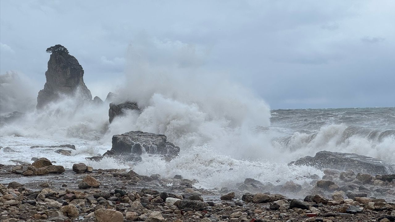 BARTIN (AA) - Bartın'ın Amasra ilçesinde hızı saatte 80 kilometreye ulaşan şiddetli rüzgar nedeniyle denizde 6 metreyi aşan dalgalar oluştu.