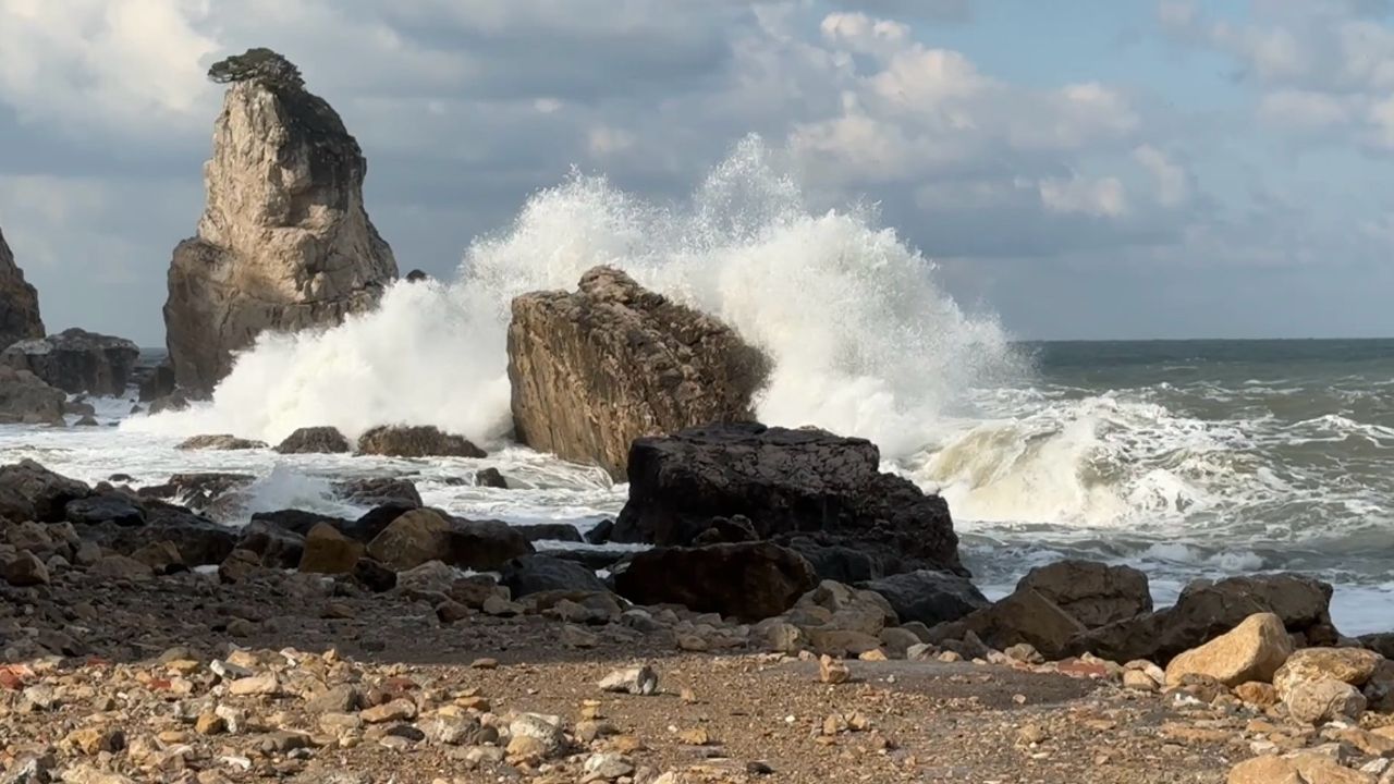 BARTIN (AA) - Bartın'ın Amasra ilçesinde şiddetli rüzgar nedeniyle denizde dalga boyu 4 metreyi geçti.