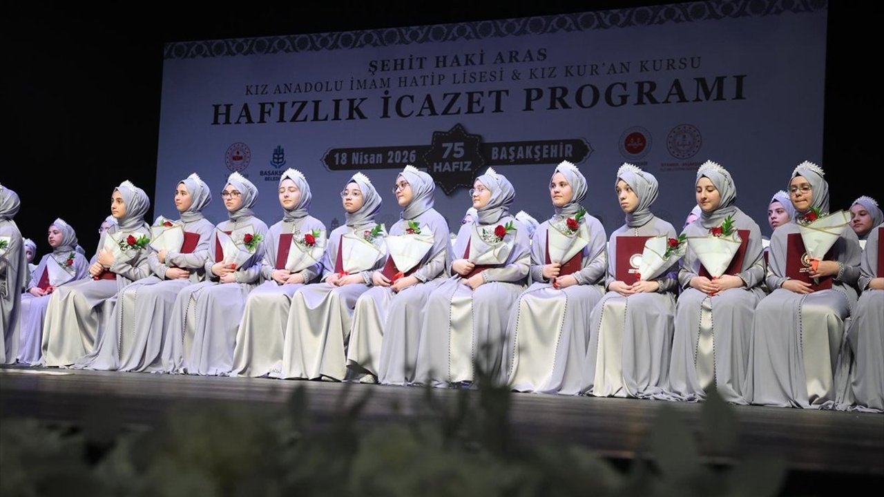 İSTANBUL (AA) - Başakşehir Şehit Haki Aras Kız Anadolu İmam Hatip Lisesi ve Kız Kur'an Kursu'nda hafızlıklarını tamamlayan 75 kız öğrenci icazetlerini aldı.