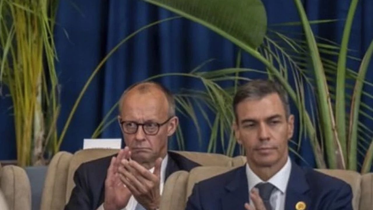 Alman gazeteci Julian Reichelt, Mısır zirvesinde anlaşmanın imzalandığı sırada Almanya Başbakanı Friedrich Merz'in salondaki anlarına ait bir fotoğrafını paylaştı.