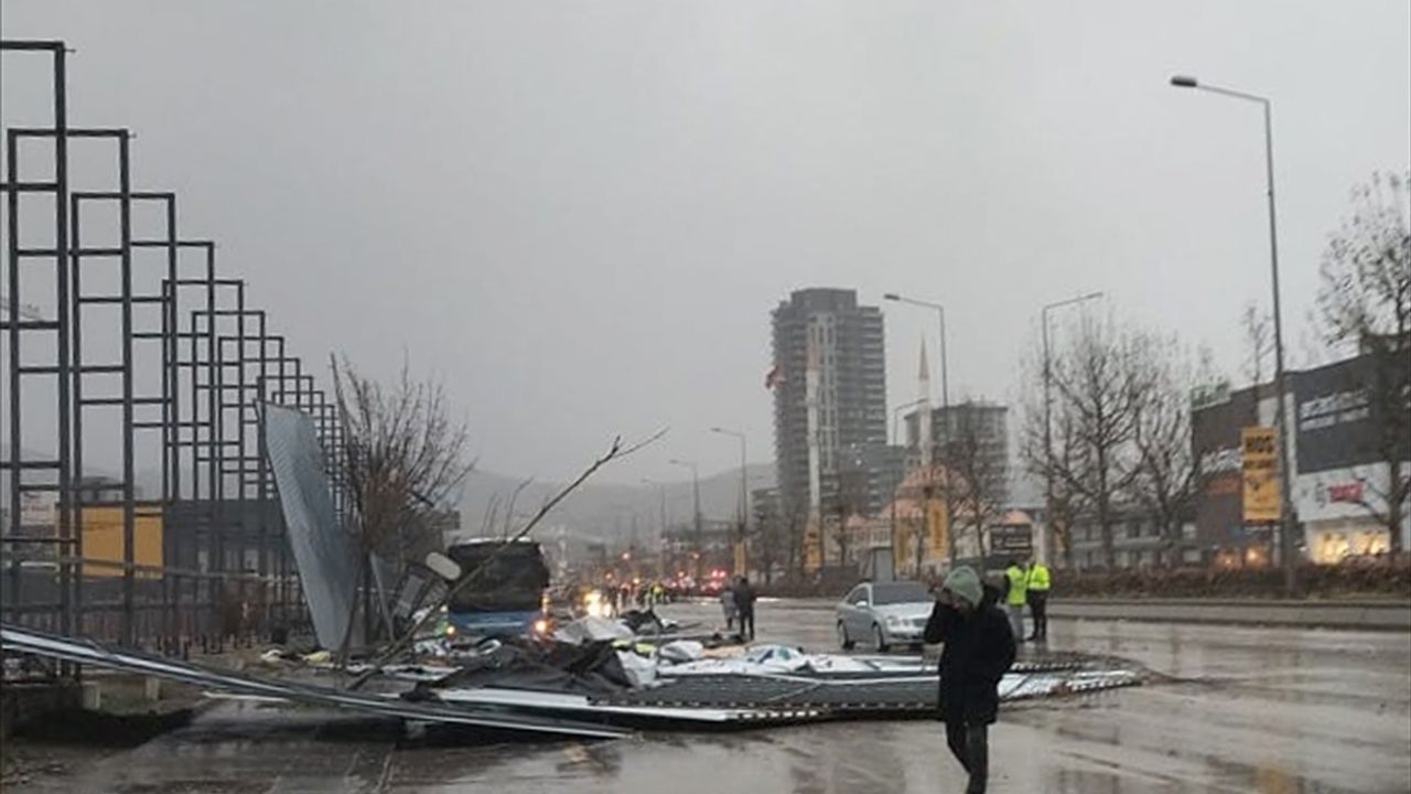 Yozgat Bulvarı üzerinde bulunan bir inşaat alanı çevresindeki alüminyum reklam tabelaları da fırtınanın etkisiyle yola savrularak, trafiği tehlikeye düşürdü.