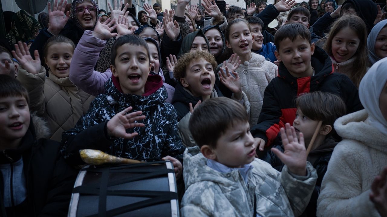 Davul sesleri eşliğinde kapı kapı gezen çocuklar, köyde bayram havası oluşturdu.