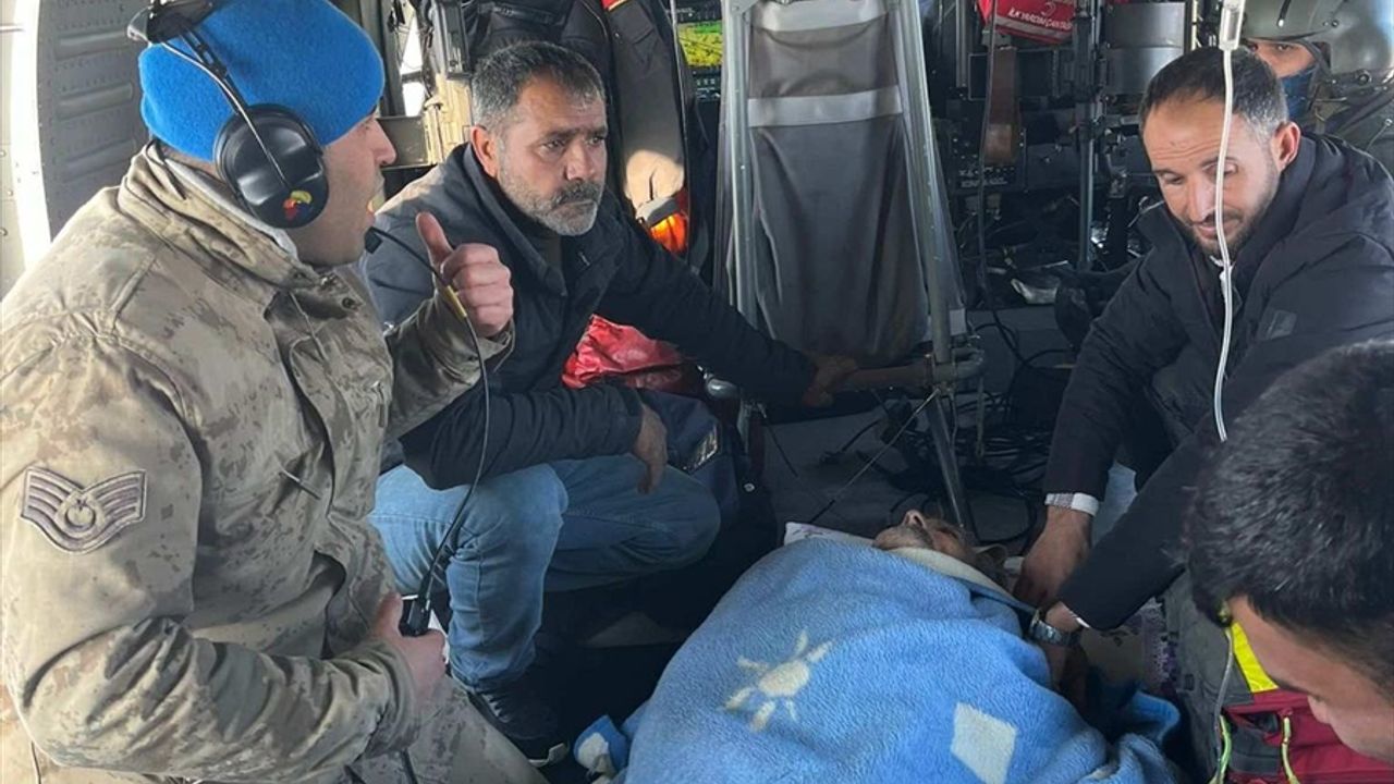 BATMAN (AA) - Batman'ın Gercüş ilçesinde kar nedeniyle yolu kapanan köyde rahatsızlanan 92 yaşındaki vatandaş, jandarma helikopteriyle hastaneye ulaştırıldı.