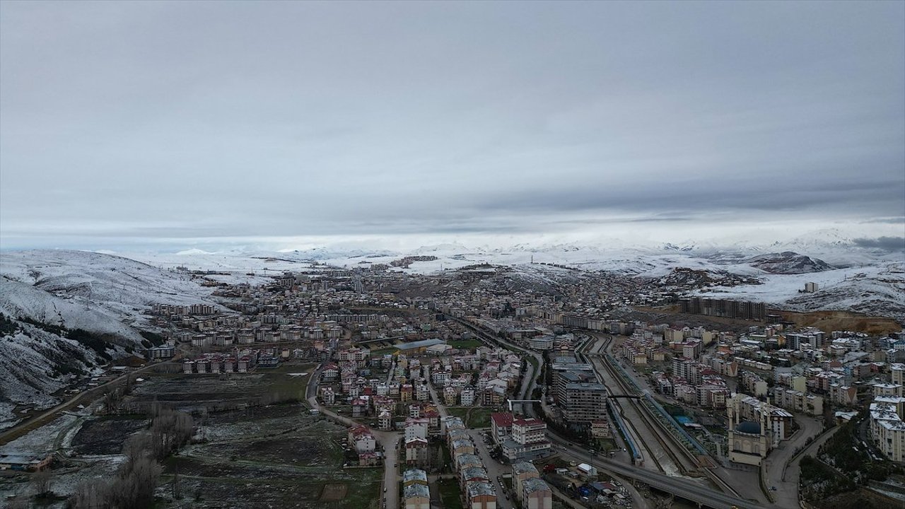 Bayburt'ta hava sıcaklığının düşmesinin ardından kar yağdı. Şehir merkezini çevreleyen beyaz örtüyle kaplı dağlar, dronla görüntülendi.