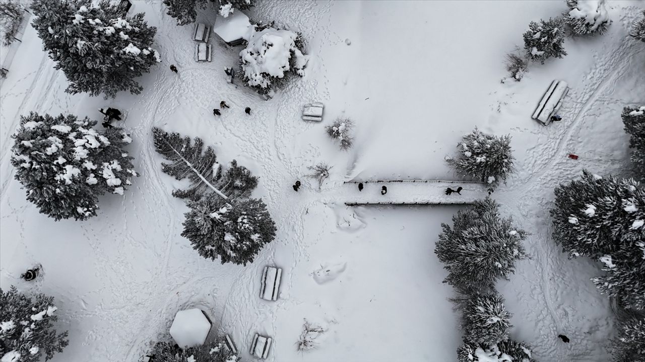 Öte yandan Domaniç Dağları'nın karla kaplı manzarası dronla da görüntülendi.