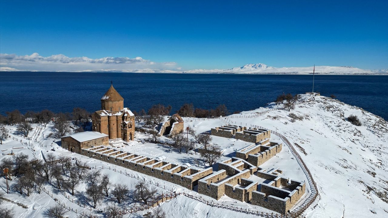 VAN (AA) - NEVZAT UMUT UZEL - ALİ ÇELİK - Karın ardından beyaz örtüyle kaplanan Van Gölü'ndeki Akdamar Adası, soğuk havaya rağmen ziyaretçilerin uğrak noktası oldu.