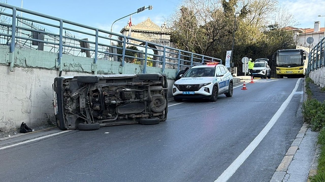 İSTANBUL (AA) - Beyoğlu'nda, kontrolden çıkan hafif ticari araç kaldırıma çarptıktan sonra yan yattı.