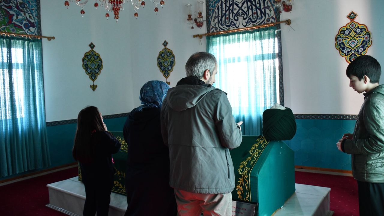 Yüzyıllardan beri devam eden geleneğin sürdürüldüğü Dursun Fakıh Türbesine ziyarete gelen vatandaşlar, burada dua ediyor.