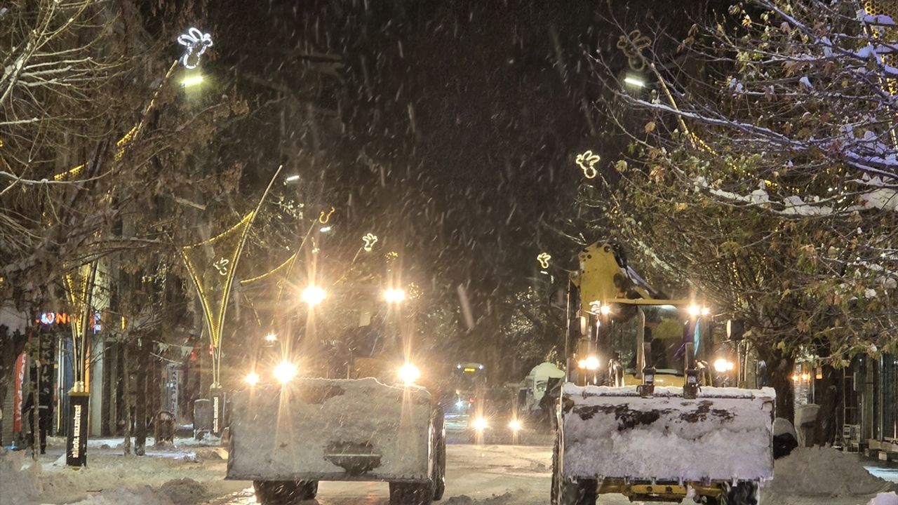 Şehir merkezinde karla mücadele çalışmaları 105 personel ve 28 iş makinesiyle gerçekleştiriliyor.